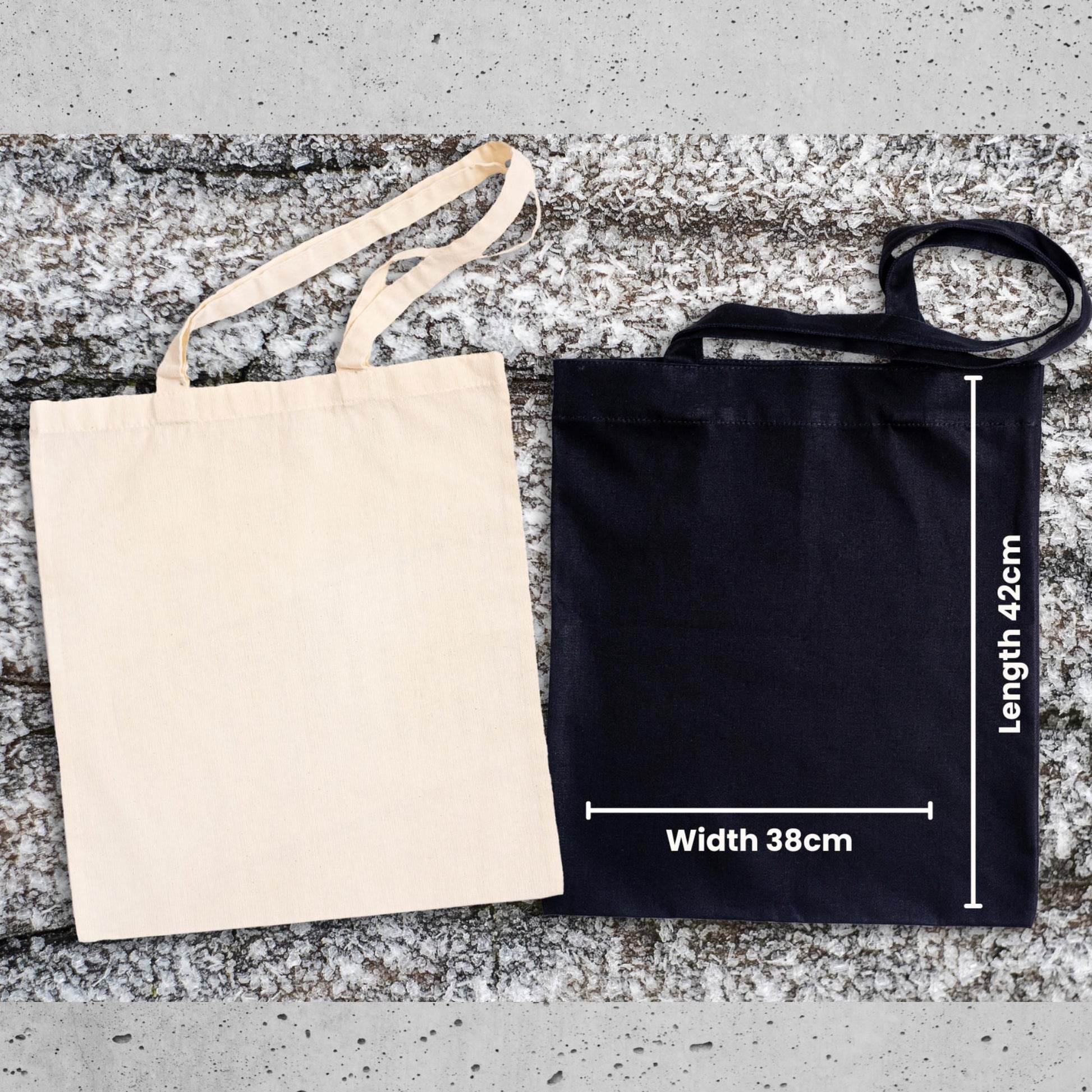 The bag size is 38cm x 42cm. Shoulder straps are 70cm (35cm from top of the bag to the top of the strap).